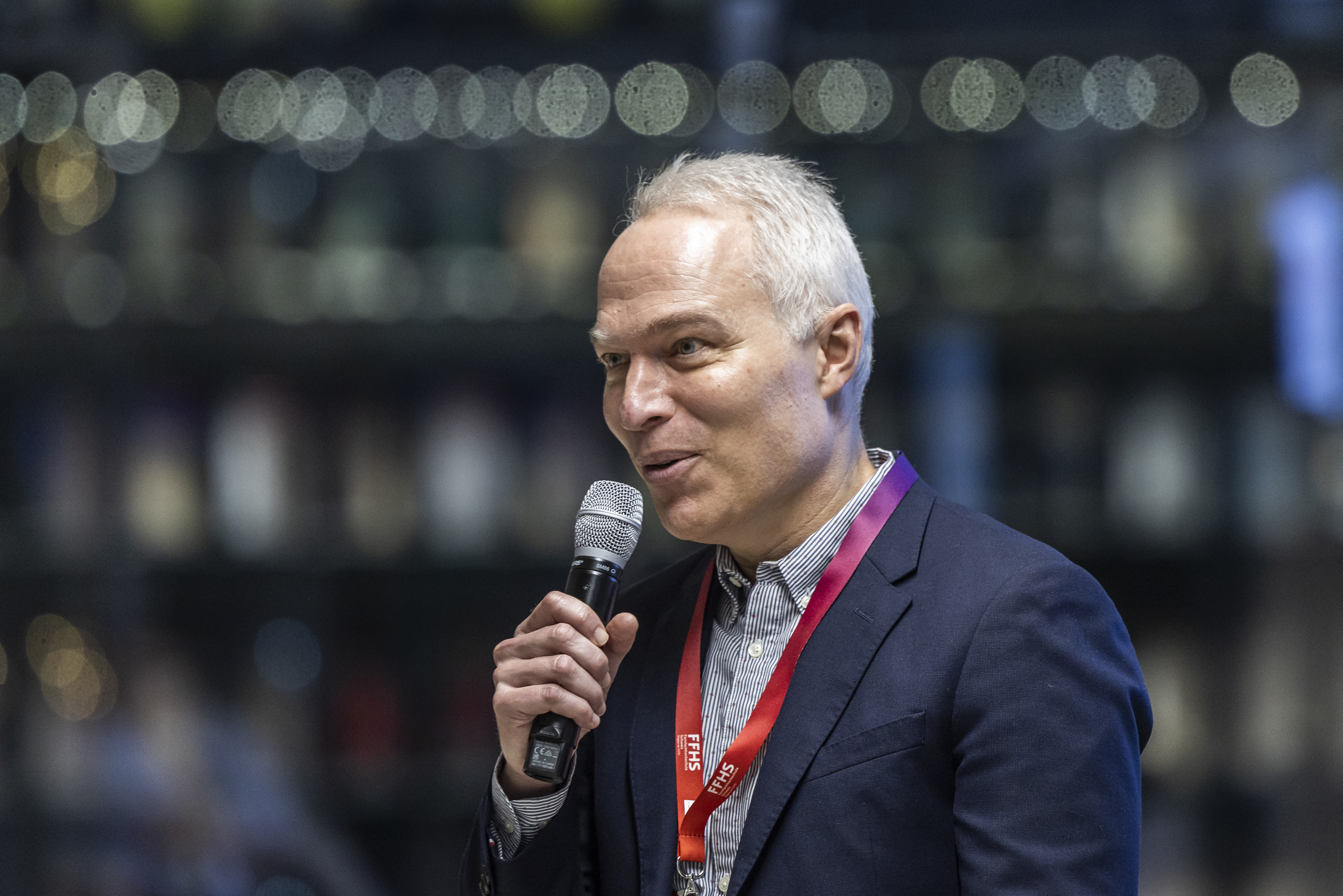 Prof. Dr. Marc Schnyder, Rekor der FFHS, präsentierte am Event «Neue Wege – Energie, Mobilität und Kreislaufwirtschaft» auch den FFHS-Nachhaltigkeitsbericht.
